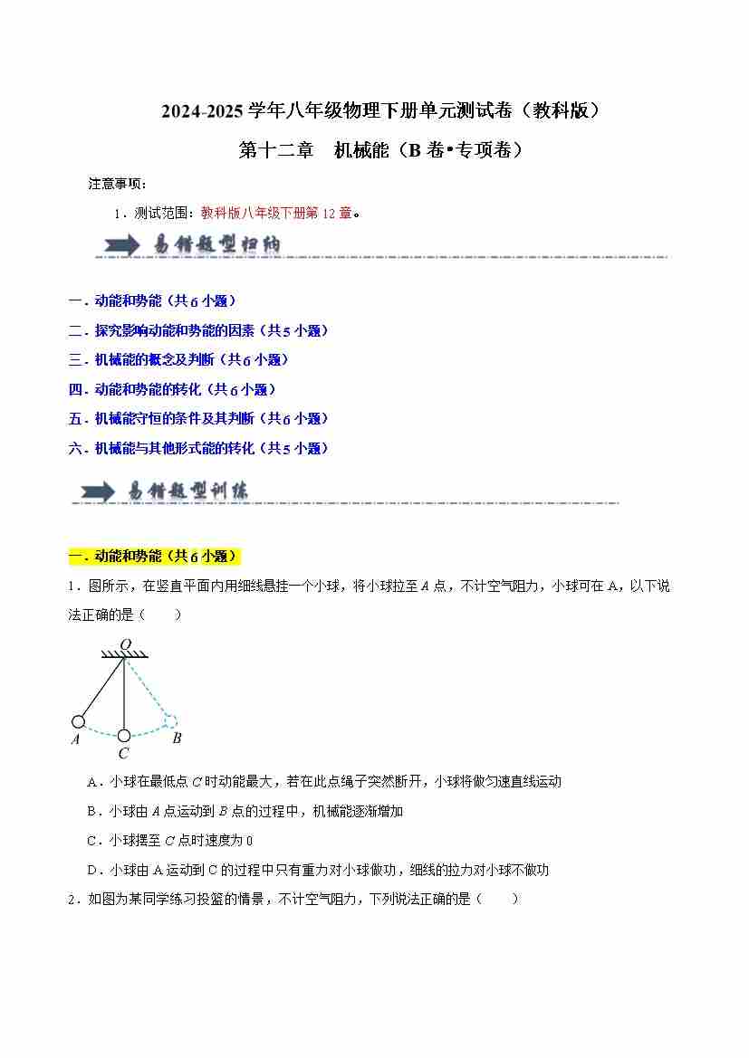 第12章 机械能(B卷 专项卷)(易错训练34题6大考点)(学生版)