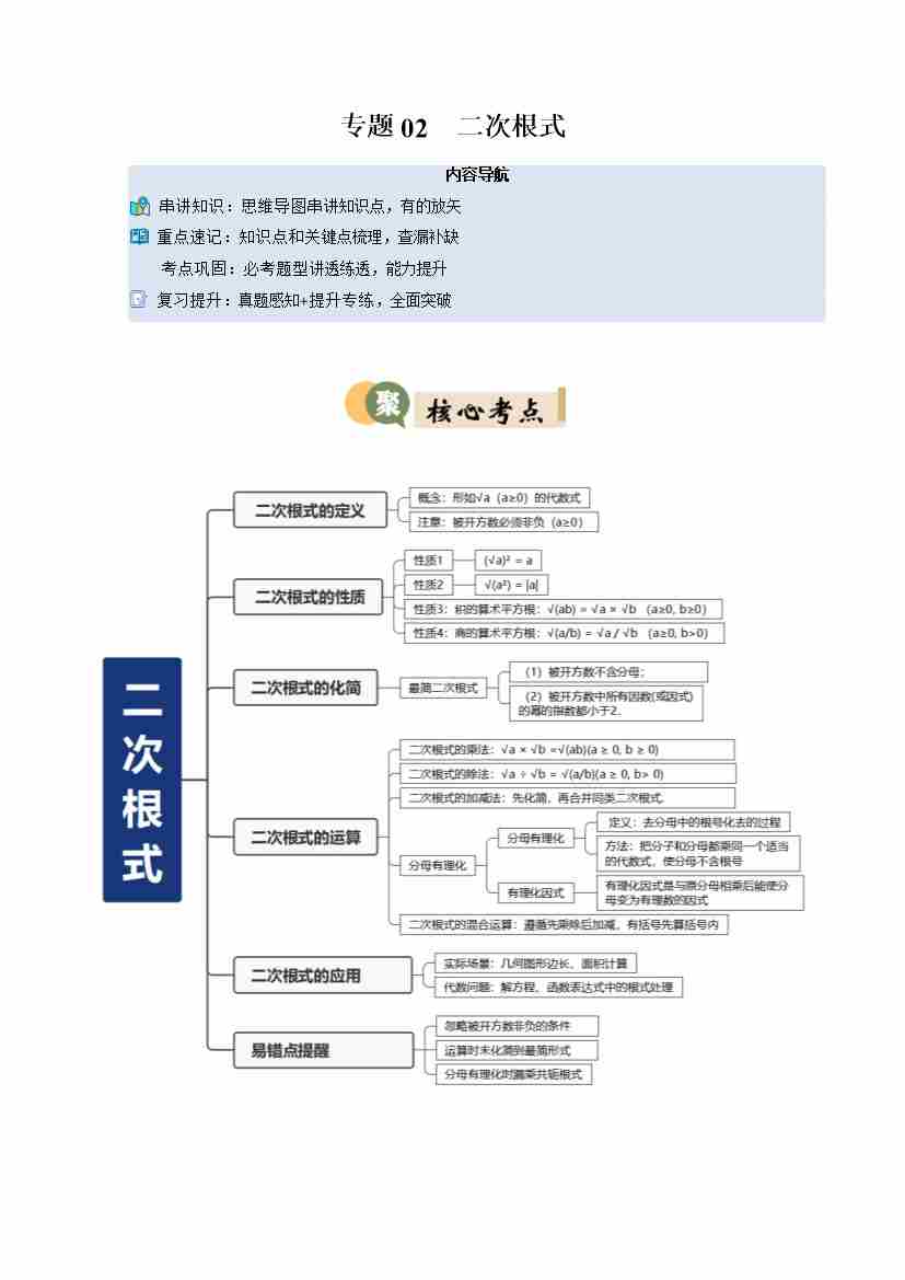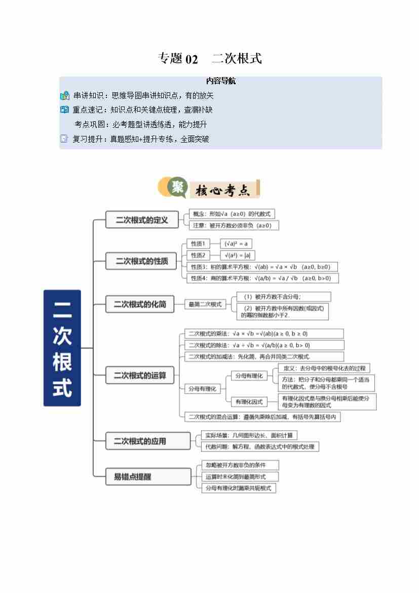 专题02 二次根式(9重点24题型复习提升)(原卷版)