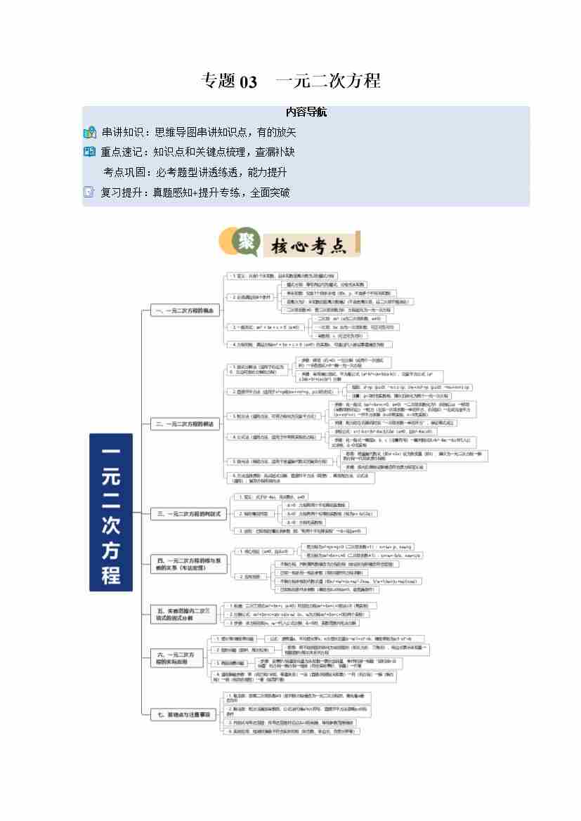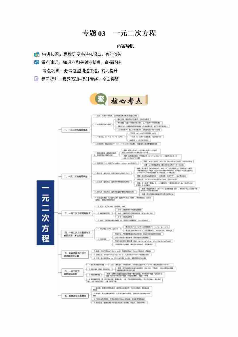 专题03 一元二次方程(6重点20题型复习提升)(原卷版)