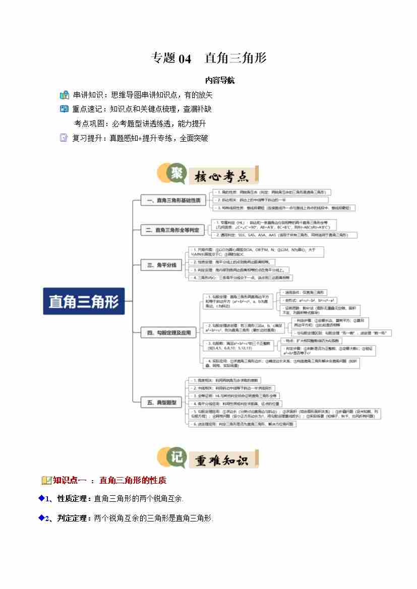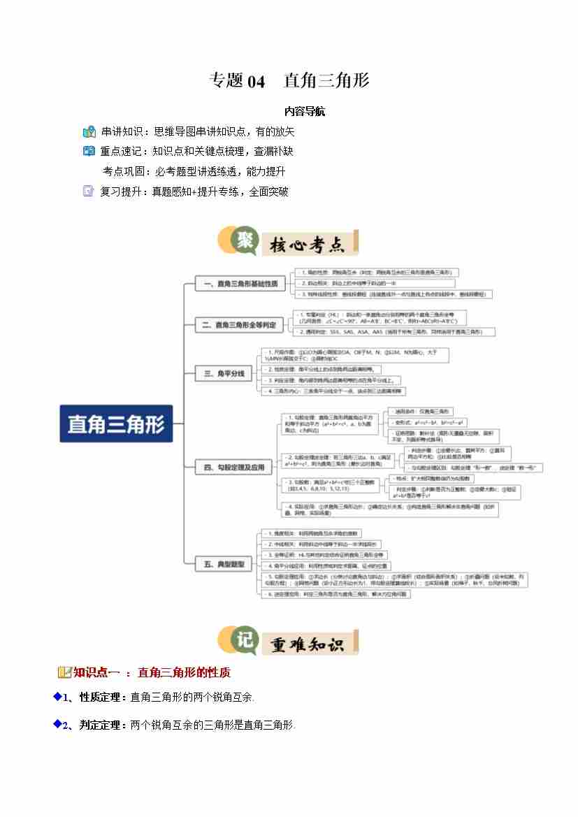 专题04 直角三角形(8重点20题型复习提升)(原卷版)
