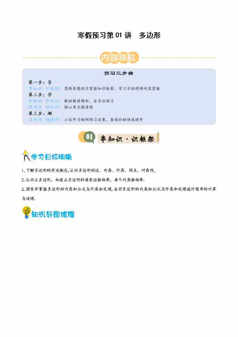 第01讲 多边形(4知识点7考点过关检测)(原卷版)