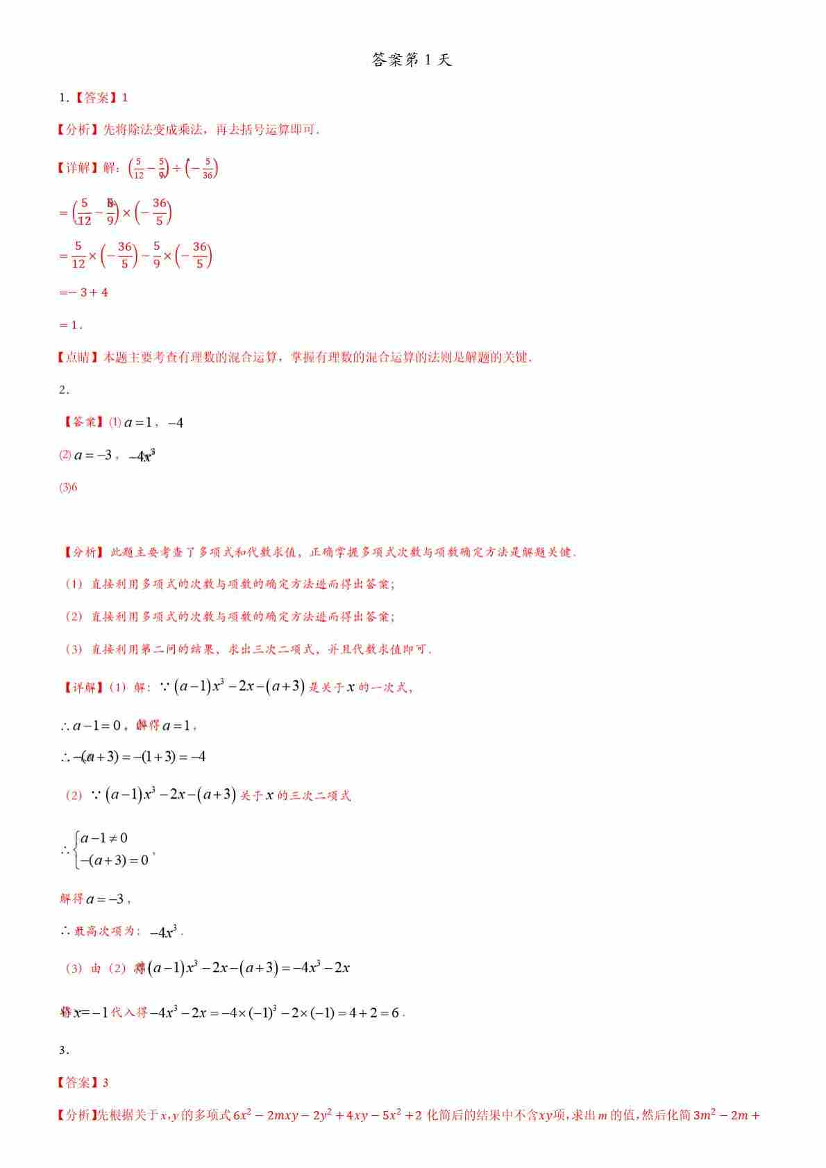 七上数学寒假作业20天每天四道题【解析版】