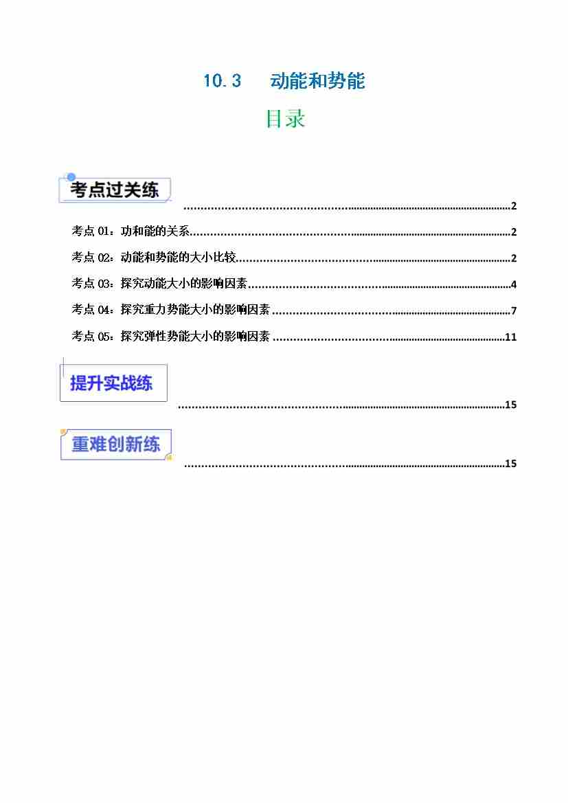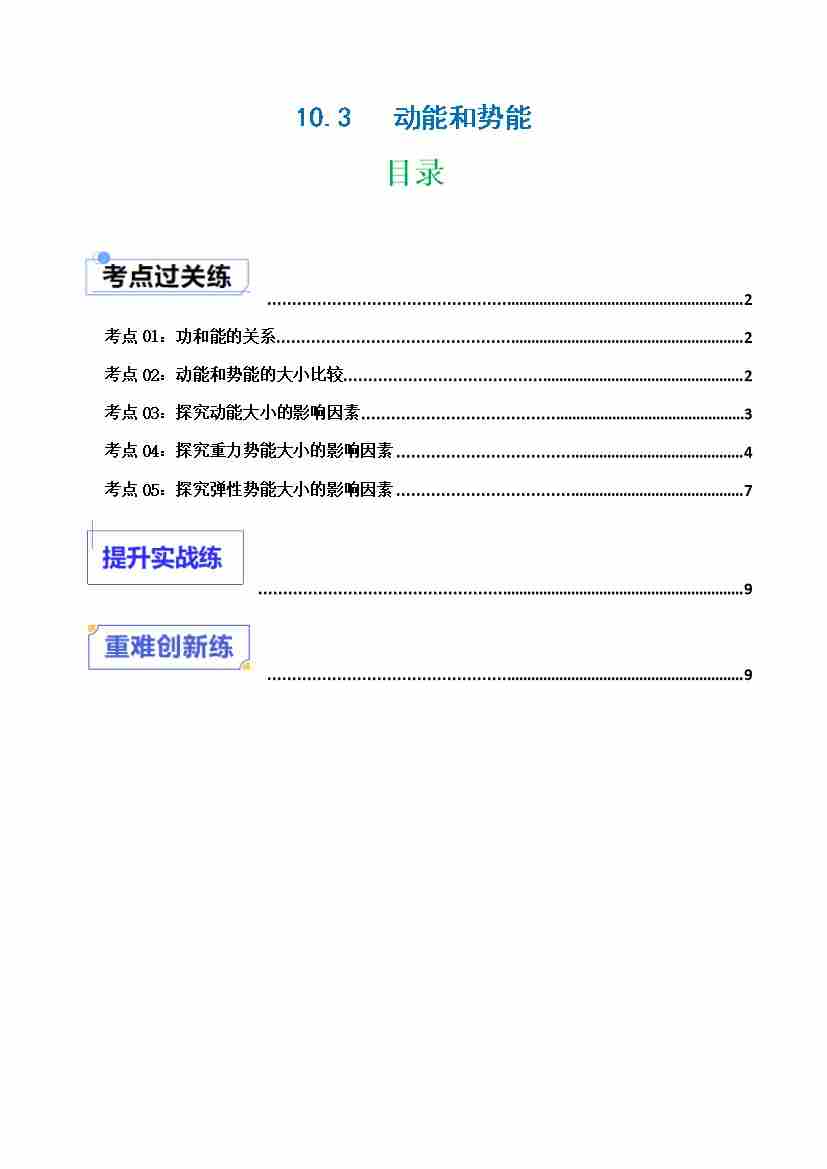 10.3动能和势能(分层练习)(原卷版)