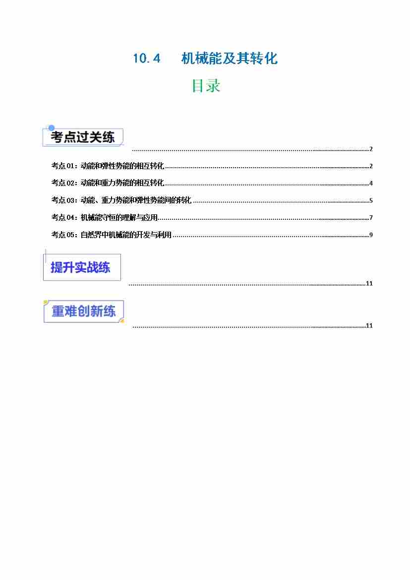10.4机械能及其转化(分层练习)(原卷版)