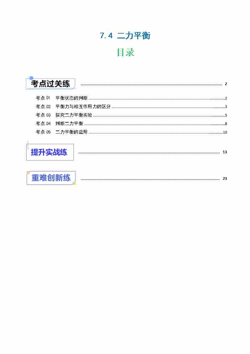 7.4 二力平衡(分层作业)原卷版