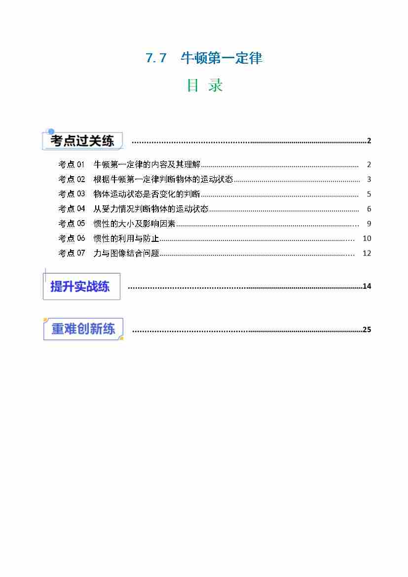7.7 牛顿第一定律(分层作业)解析版