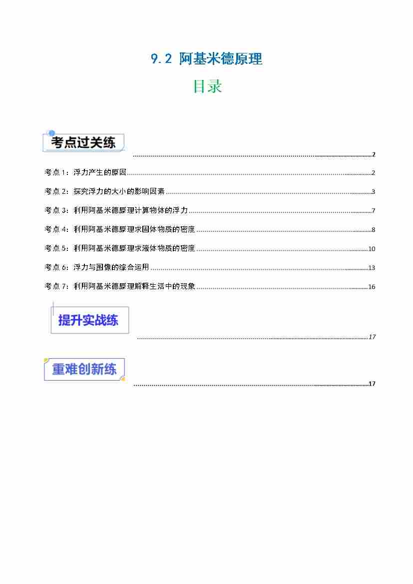9.2 阿基米德原理(分层练习)(原卷版) 2