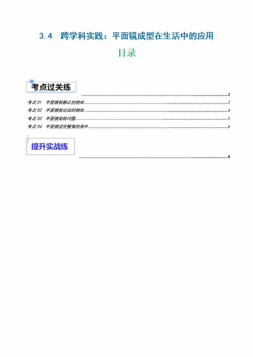 3.4 跨学科实践:平面镜成型在生活中的应用(分层作业)解析版