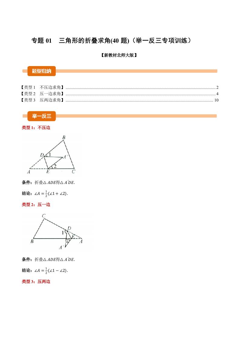 专题01 三角形的折叠求角(40题)(举一反三专项训练)(试题版)