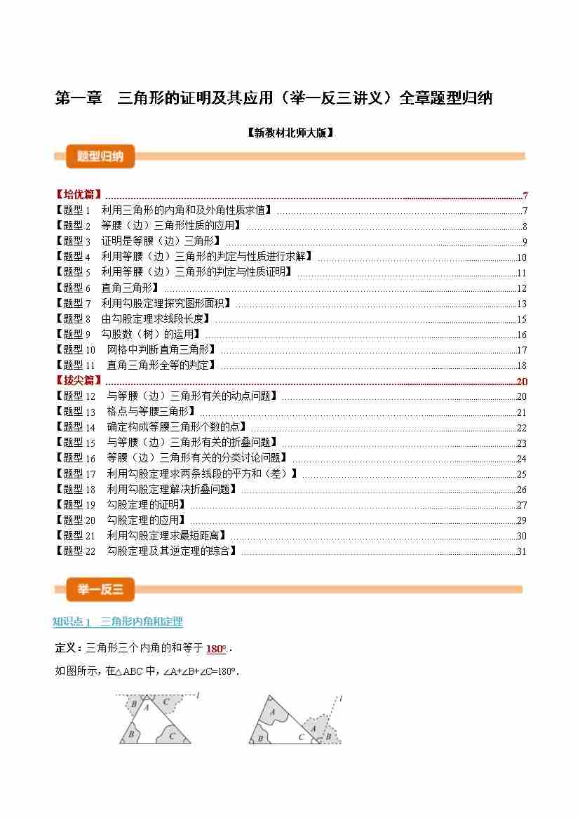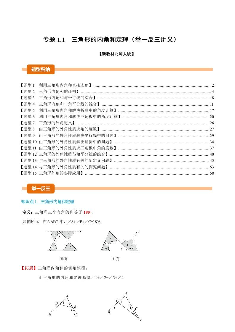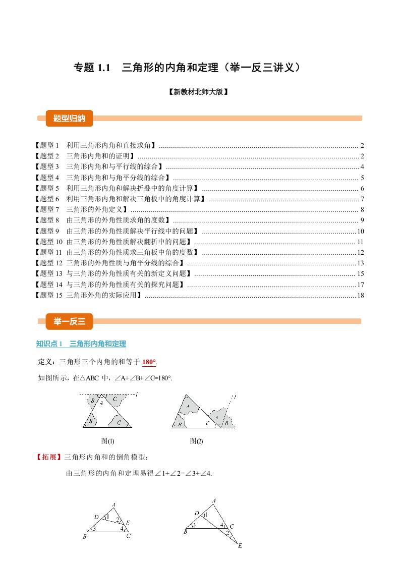 专题1.1 三角形的内角和定理(举一反三讲义)(解析版)