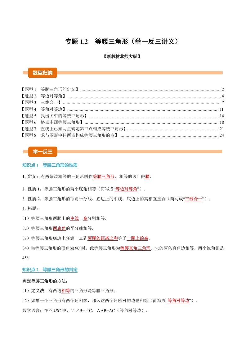 专题1.2 等腰三角形(举一反三讲义)(解析版)
