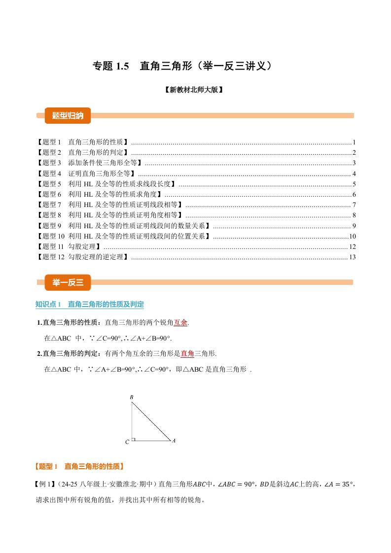 专题1.5 直角三角形(举一反三讲义)(解析版)