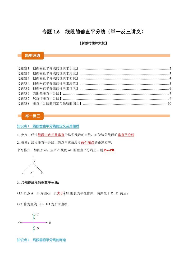 专题1.6 线段的垂直平分线(举一反三讲义)(解析版)