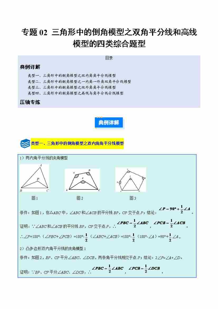 专题02 三角形中的倒角模型之双角平分线和高线模型的三类综合题型(压轴题专项训练)(解析版)