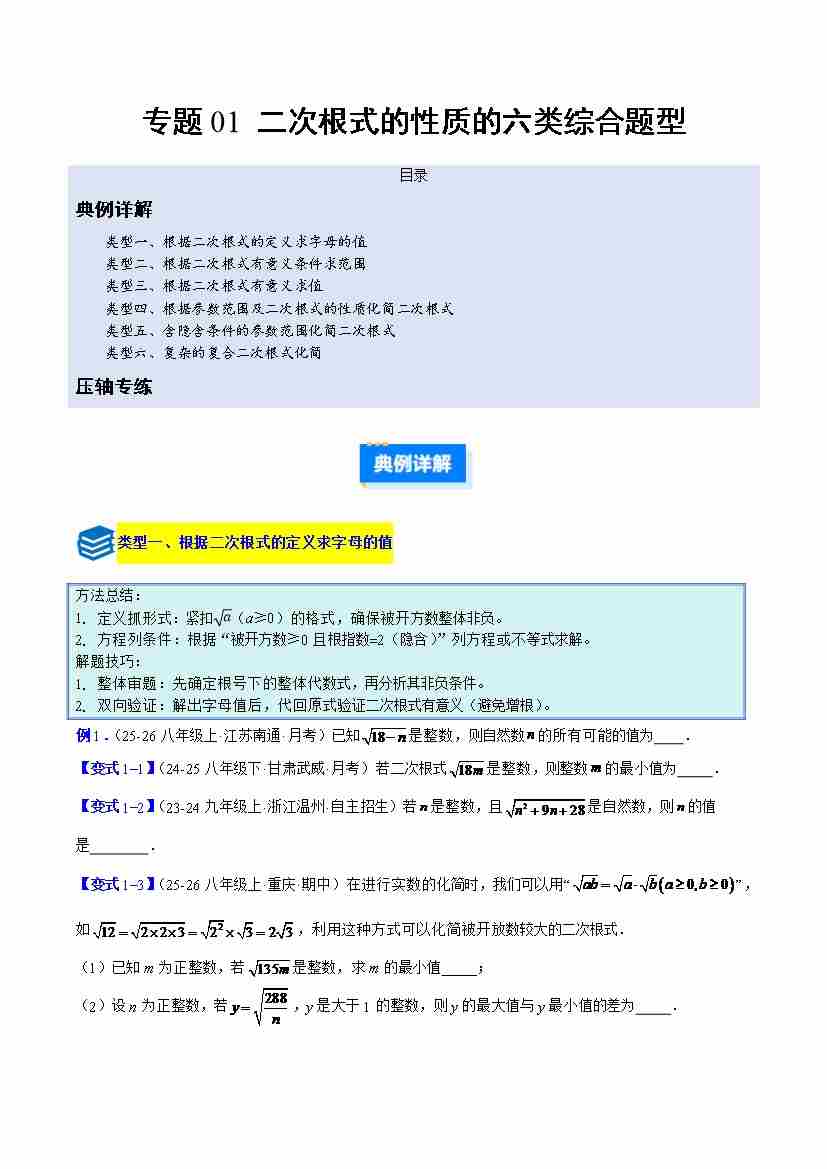专题01 二次根式的性质的六类综合题型(压轴题专项训练)(原卷版)