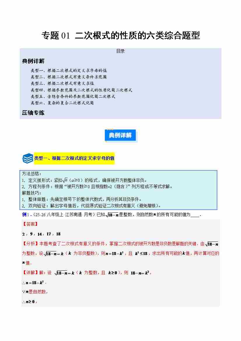 专题01 二次根式的性质的六类综合题型(压轴题专项训练)(解析版)