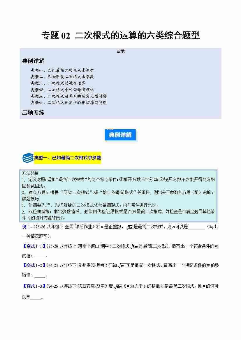 专题02 二次根式的运算的六类综合题型(压轴题专项训练)(原卷版)