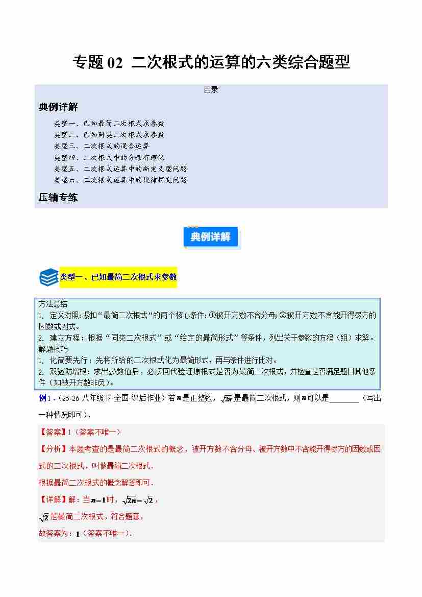 专题02 二次根式的运算的六类综合题型(压轴题专项训练)(解析版)