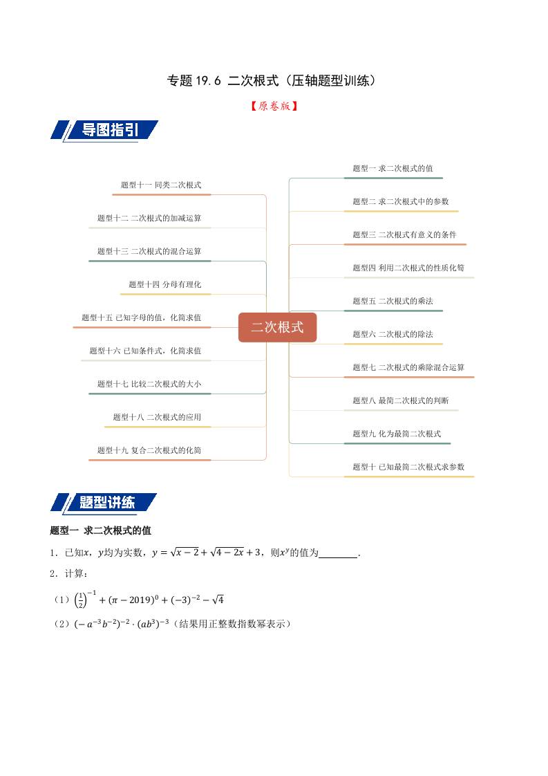 专题19.5 二次根式(十九压轴题题型训练共38题)原卷版