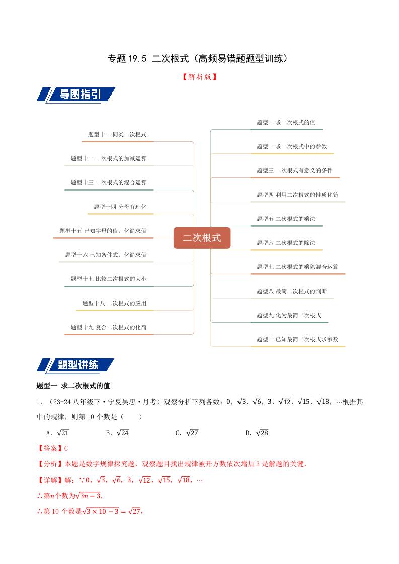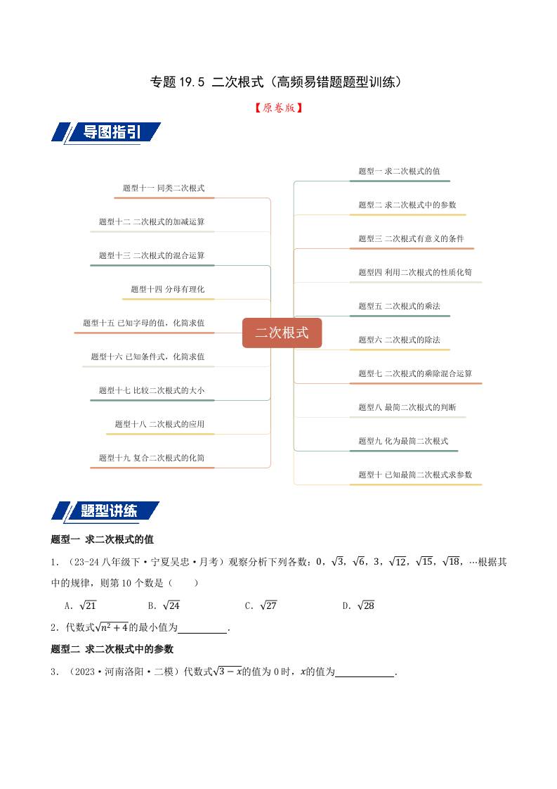 专题19.5 二次根式(十九压轴题题型训练共38题)原卷版