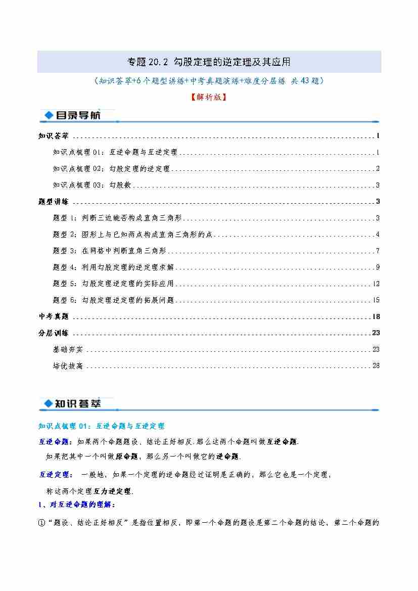 专题20.2 勾股定理的逆定理及其应用(知识荟萃6个题型讲练中考真题演练难度分层练 共43题)解析版