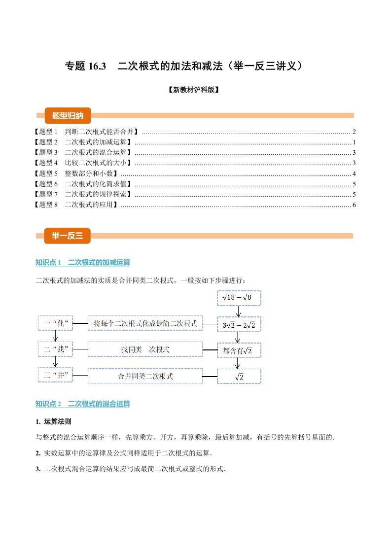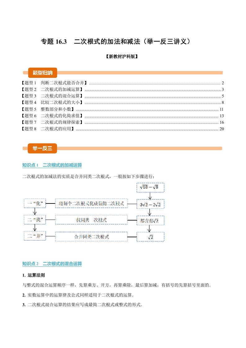 专题16.3 二次根式的加法和减法(举一反三讲义)(解析版)