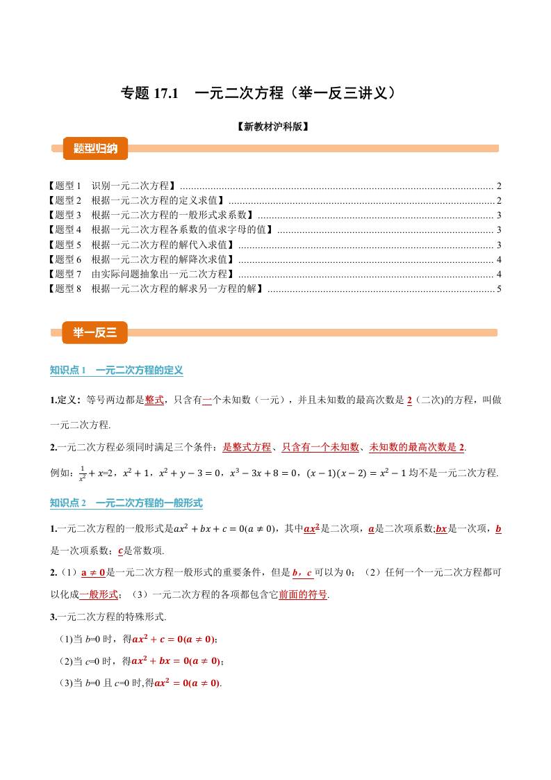 专题17.1 一元二次方程(举一反三讲义)(解析版)