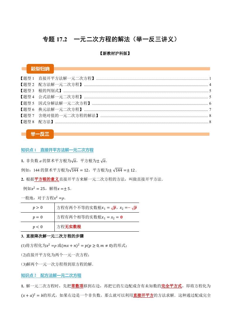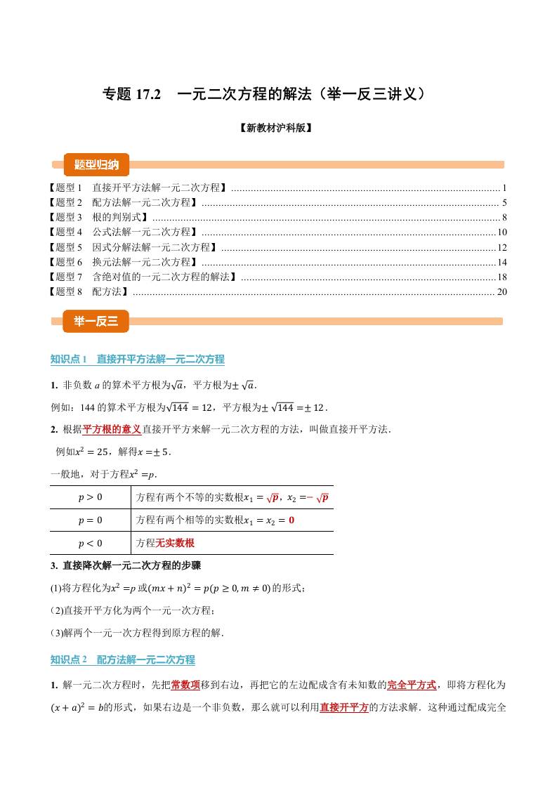 专题17.2 一元二次方程的解法(举一反三讲义)(解析版)
