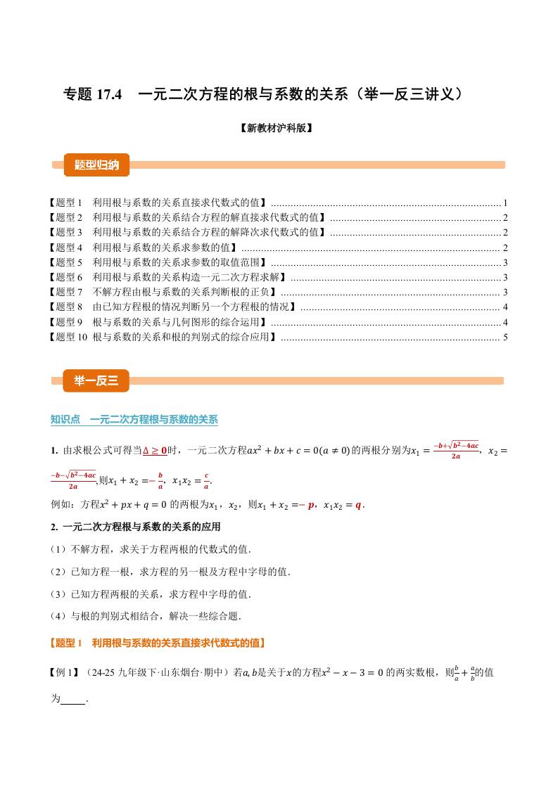 专题17.4 一元二次方程的根与系数的关系(举一反三讲义)(解析版)
