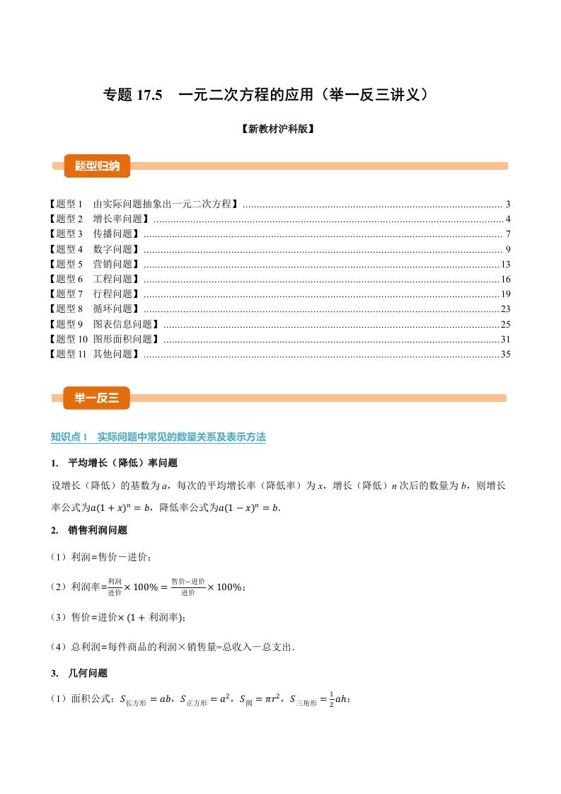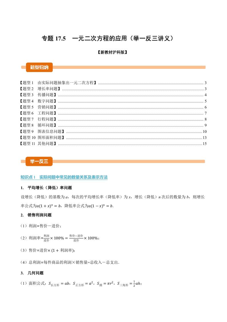 专题17.5 一元二次方程的应用(举一反三讲义)(解析版)