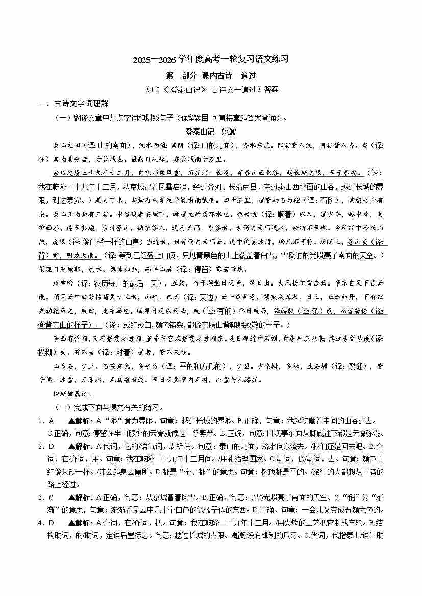 《登泰山记》 古诗文一遍过〗教师版