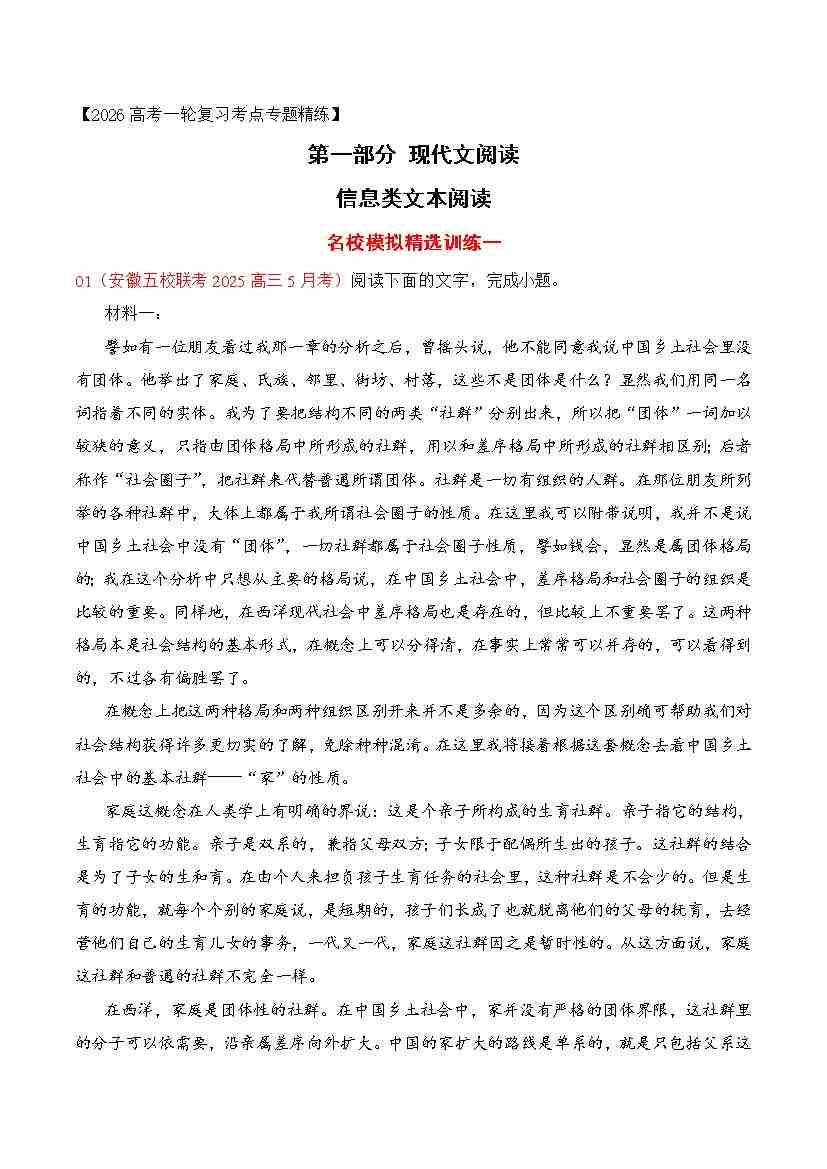 01 信息类文本阅读名校模拟精选训练一(学生版)