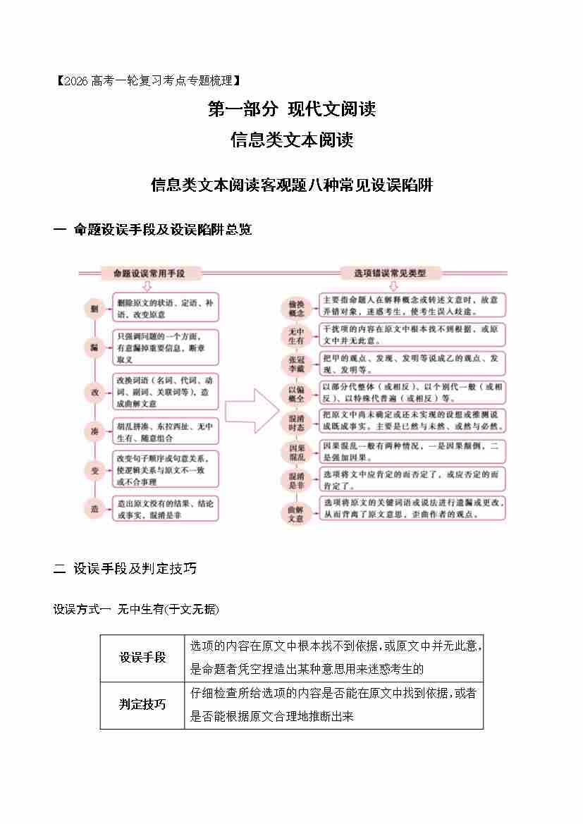 03 信息类文本阅读客观题八种常见设误陷阱(信息文本)(全国通用)