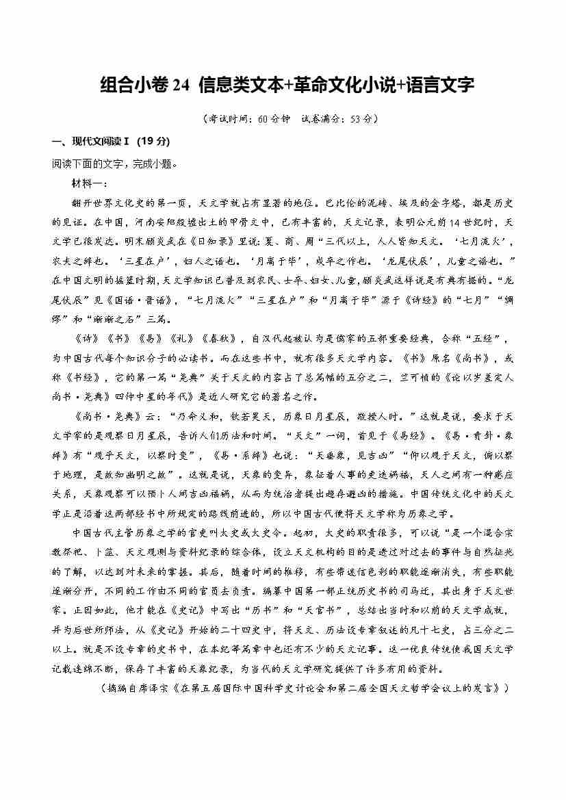 组合小卷24 信息类文本、革命文化小说、语言文字运用(全国通用)(教师版)
