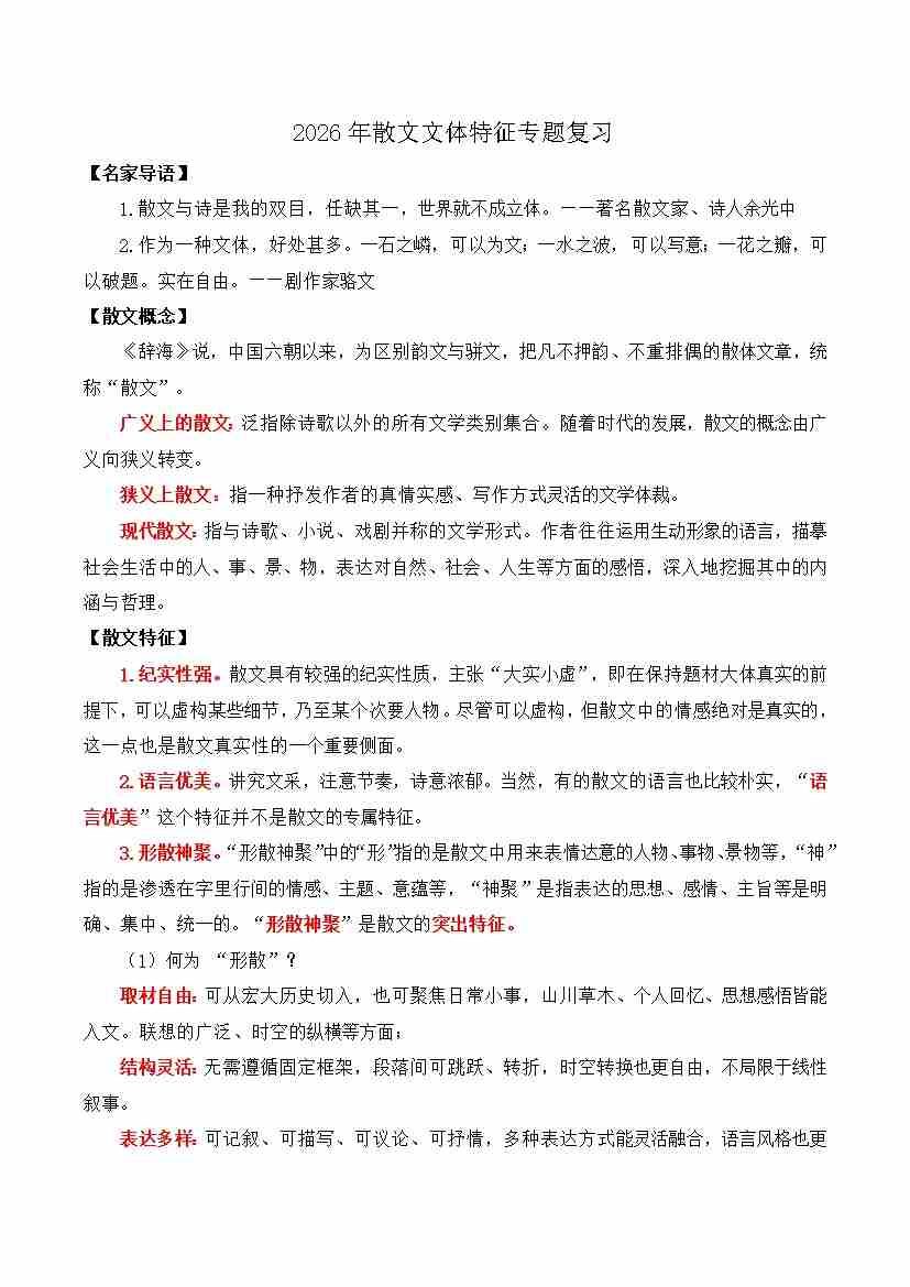 彻底讲清散文文体特征(学生版)