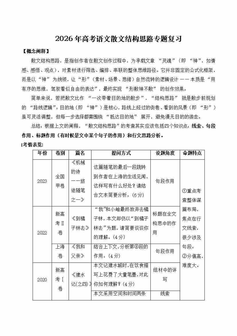散文结构思路专题(学生版)