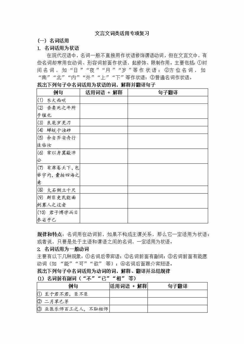 文言文词类活用专项复习(学生版)