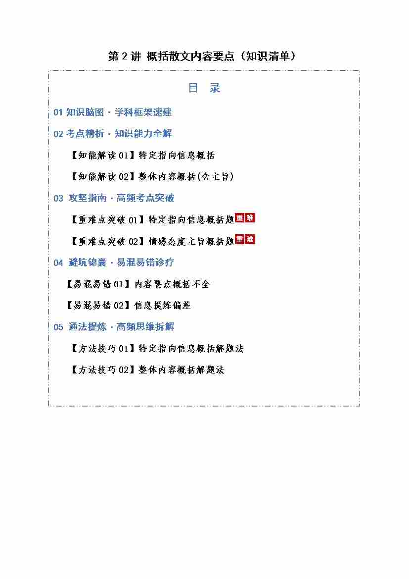 第02讲 概括散文内容要点(知识清单)(全国通用)学生版