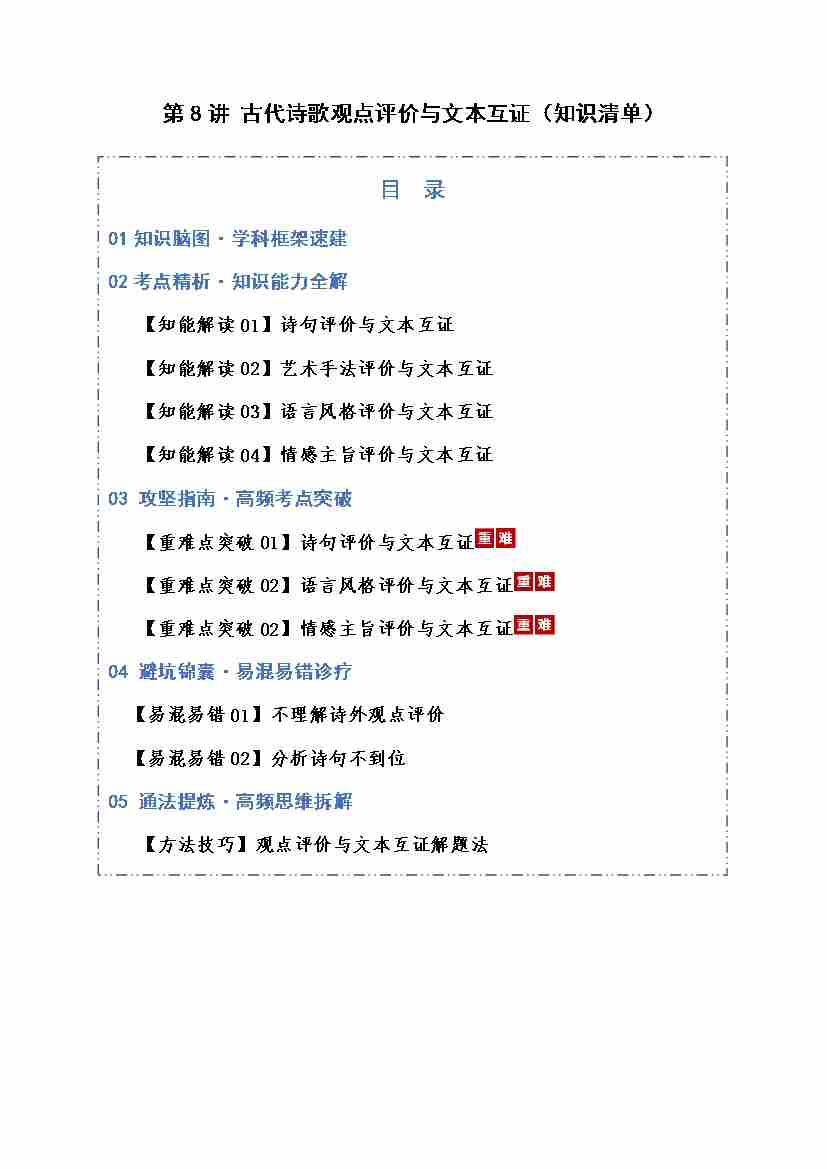 第08讲 古代诗歌观点评价与文本互证(知识清单)(全国通用)学生版