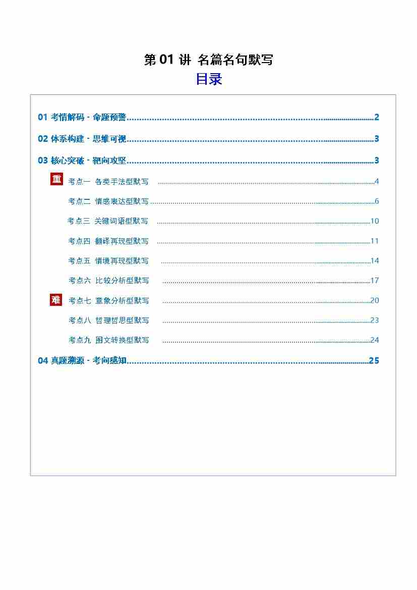 第01讲 名篇名句默写(专项训练)(全国通用)(学生版)