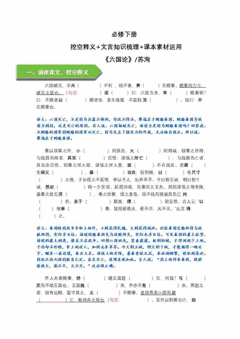 《六国论》文言知识梳理与写作取材(学生版)-10页