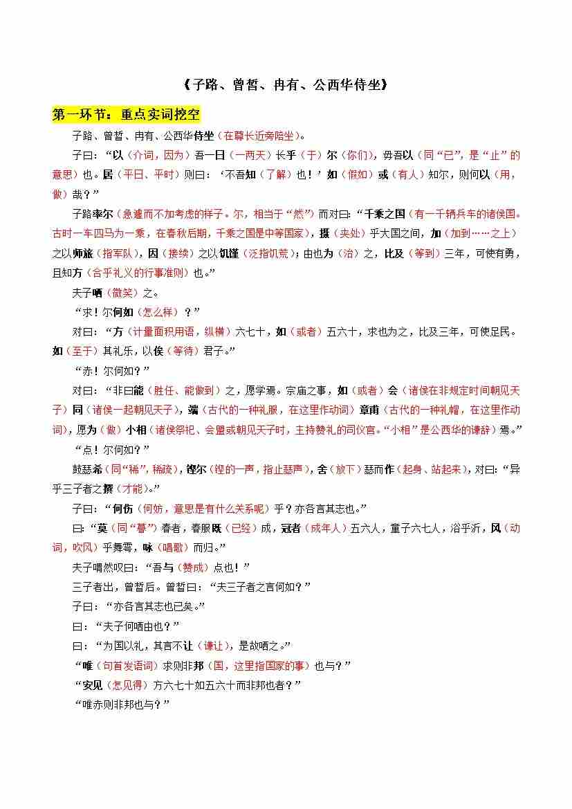 专题03 子路、曾皙、冉有、公西华侍坐、齐桓晋文之事(文言文挖空训练)(全国通用)(学生版)