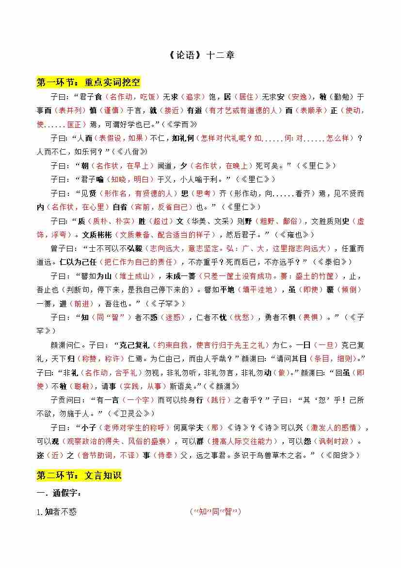 专题08 论语十二章、大学之道、人皆有不忍人之心(文言文挖空训练)(全国通用)(答案版)