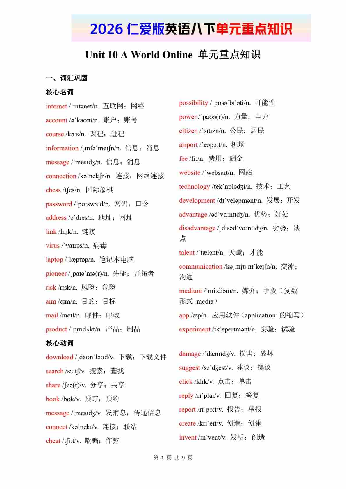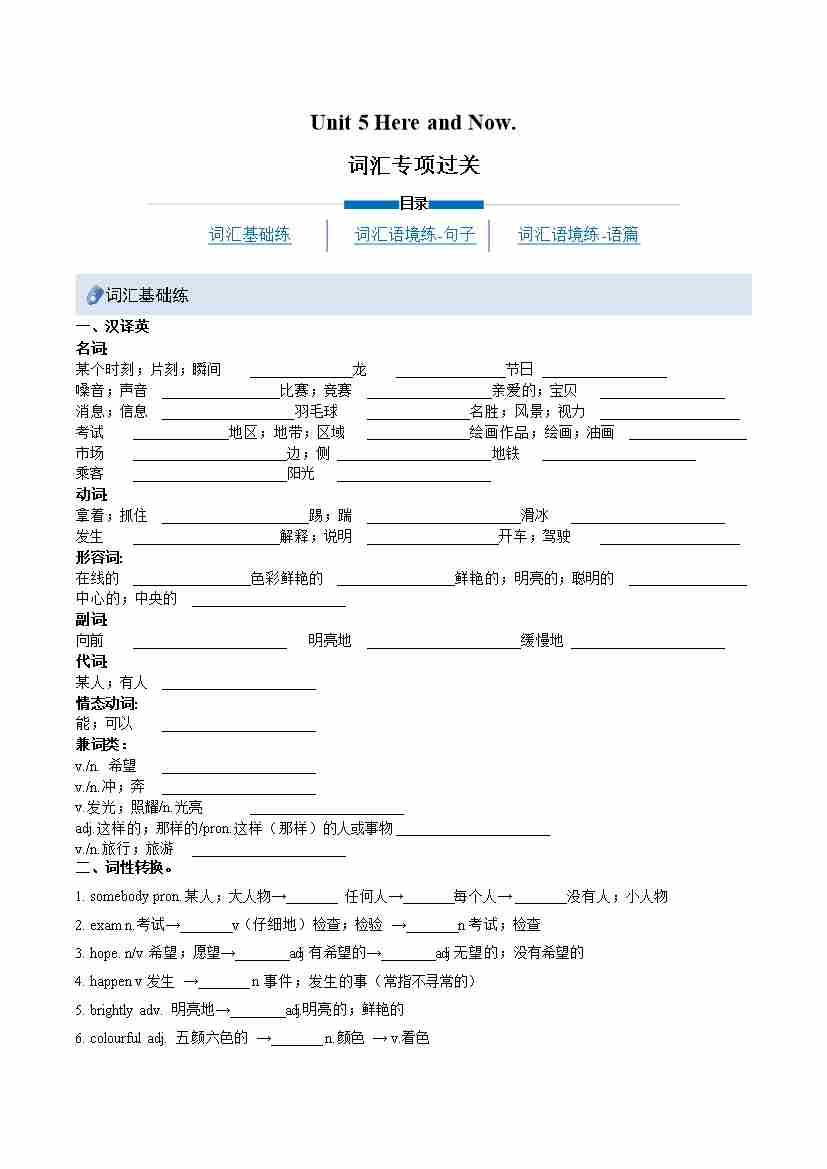 Unit 5 Here and Now (重难词汇精练)(原卷版)