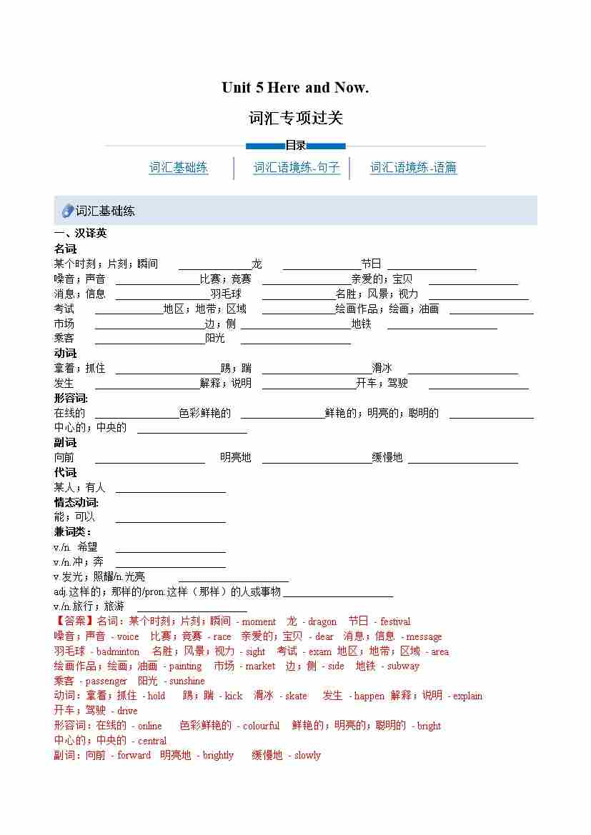 Unit 5 Here and Now (重难词汇精练)(解析版)