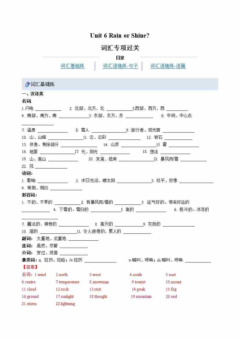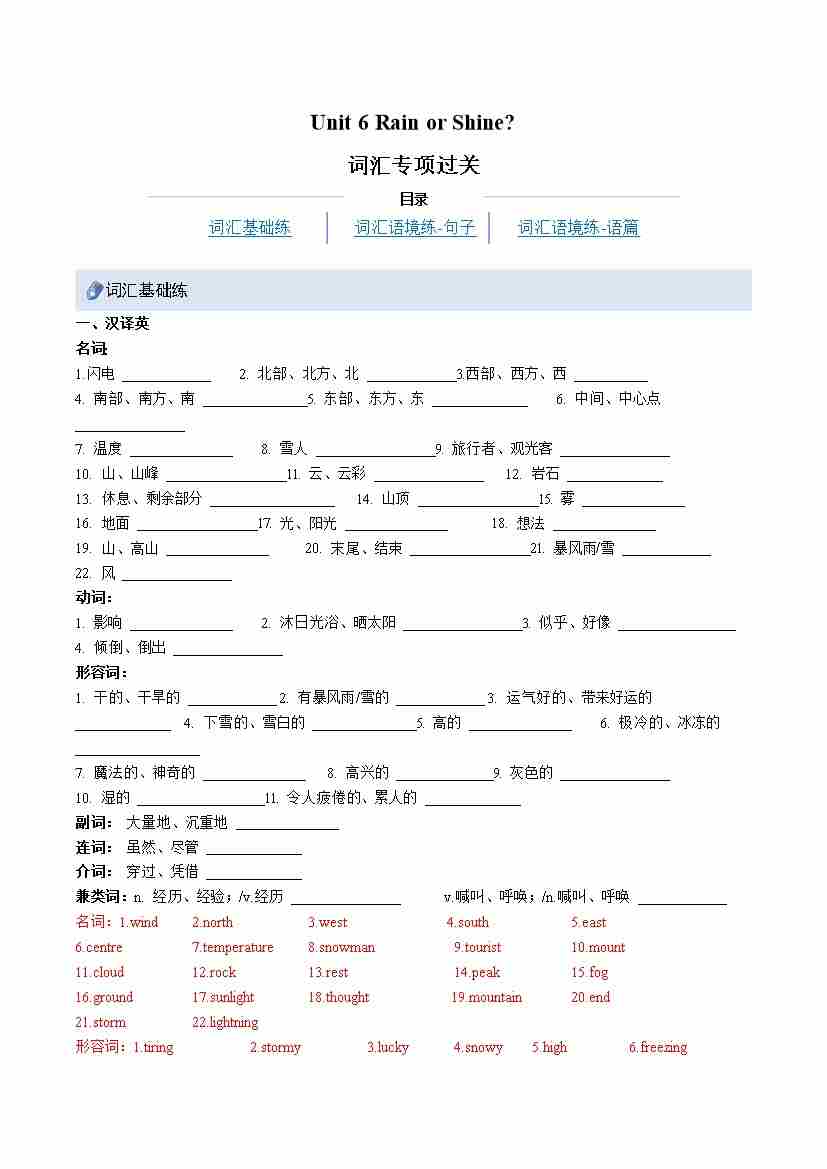 Unit 6 Rain or Shine (重难词汇精练)(解析版)