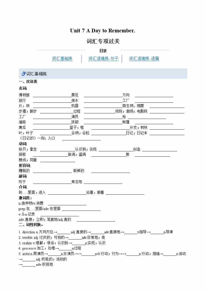 Unit 7 A Day to Remember (重难词汇精练)(原卷版)