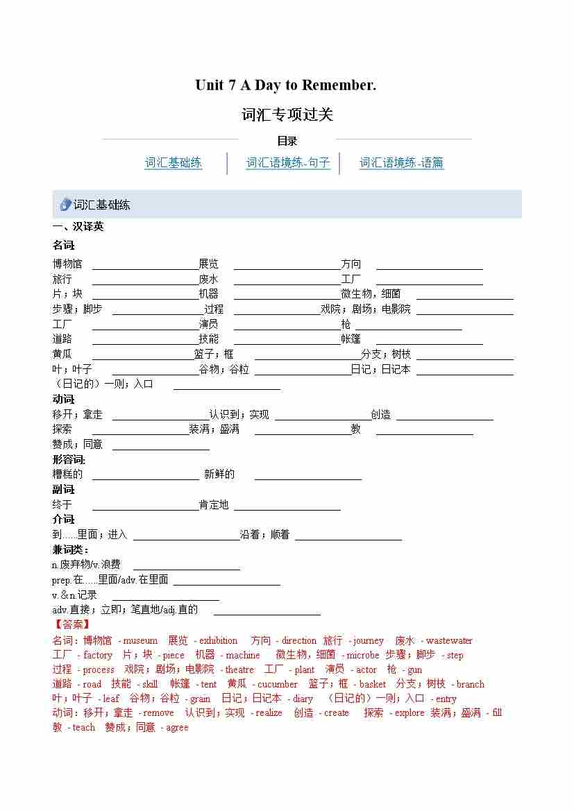 Unit 7 A Day to Remember (重难词汇精练)(解析版)