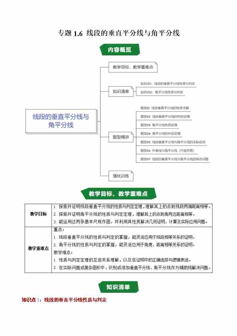 专题1.6 线段的垂直平分线与角平分线(2大考点7大题型强化训练)(高效培优讲义)(解析版)