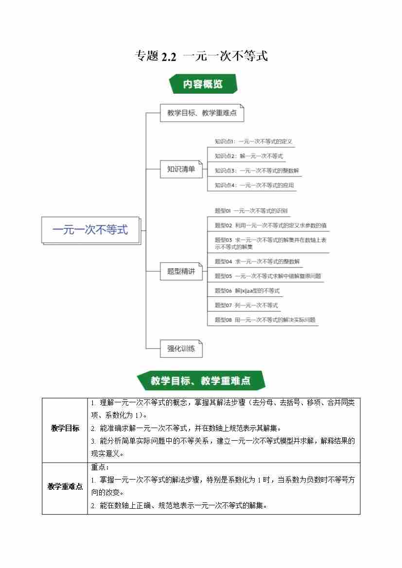 专题2.2 一元一次不等式(4大考点8大题型强化训练)(高效培优讲义)(原卷版)